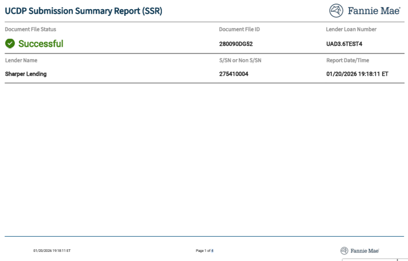 Regardless of whether the appraisal report is sent automatically (i.e., at time of delivery/post-delivery configurations) or manually, Appraisal Firewall X will import the UCDP results and generate the SSR Successful or Not Successful outputs. NOTE: a .JSON output will be included within the SSR output result. This output is intended to provide lenders with more autonomy to parse out any data necessary.